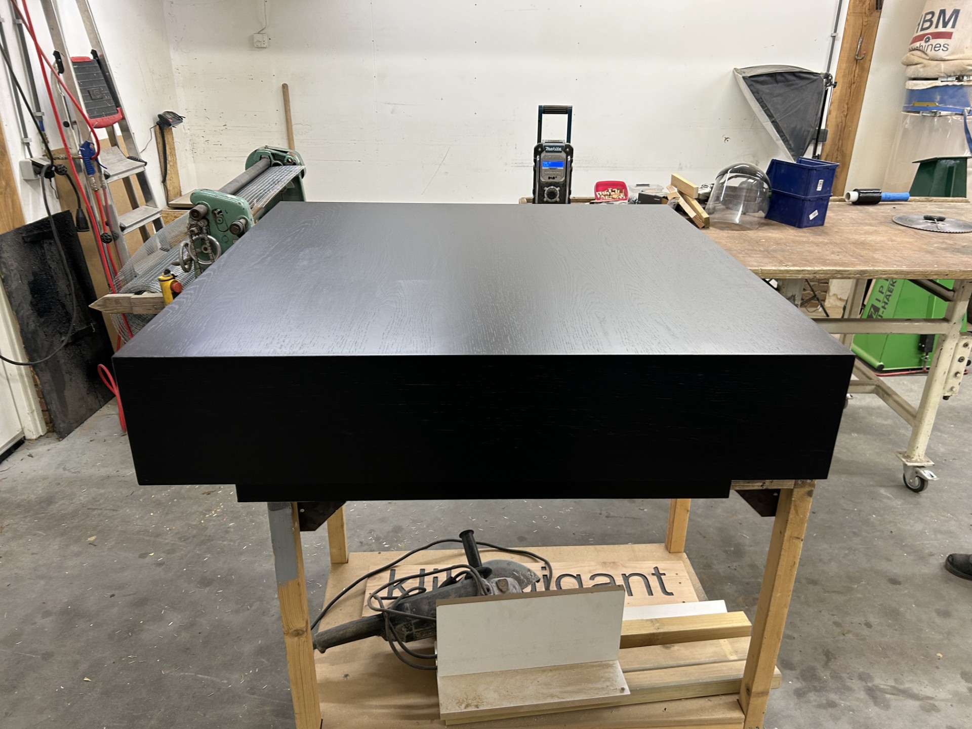 Tafel is zwevend op een plint.