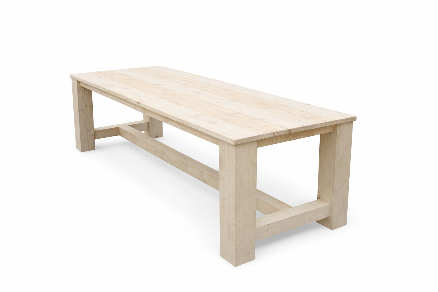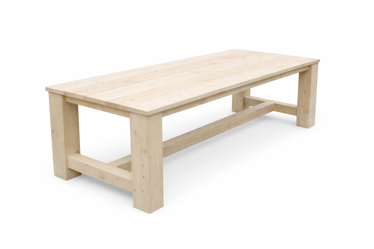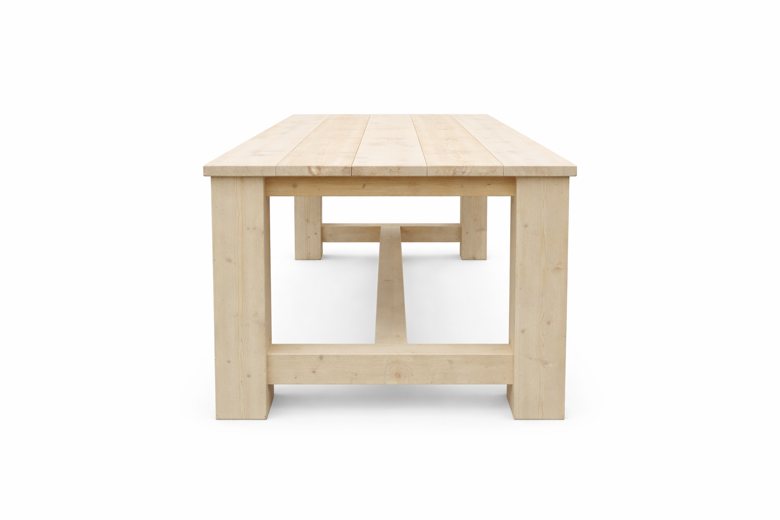 Deze kloostertafel wordt gemaakt van degelijk steigerhout en heeft een solide onderstel. De poten zijn 15 x 15 cm en netjes in verstek gezet, wat zorgt voor een strak en sterk geheel. De stevige balken van 9 x 9 cm geven de tafel extra stabiliteit en een robuuste uitstraling.