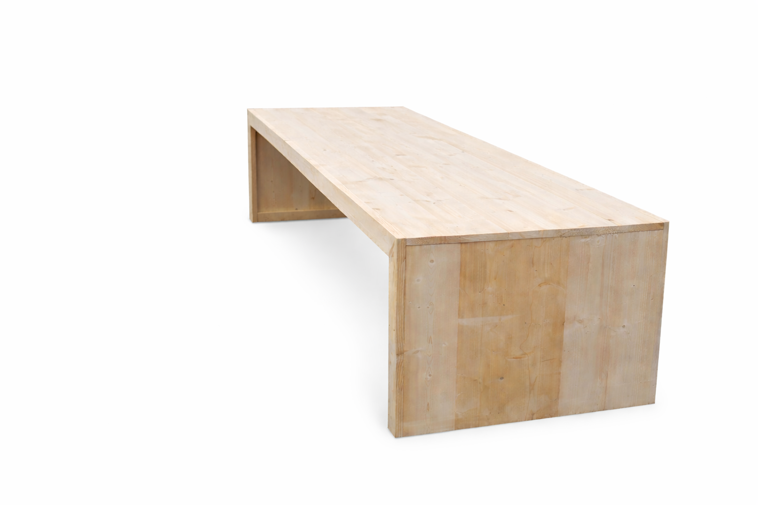 De tafel wordt gemaakt van nieuw steigerhout dat netjes geschuurd is, waardoor het hout een mooie, rustige uitstraling heeft en prettig aanvoelt. De poten hebben een stevig aanzicht van 9 cm, wat de tafel een krachtige en robuuste look geeft. Ook het tafelblad heeft een 9 cm dik aanzicht, waardoor het geheel mooi in balans blijft.