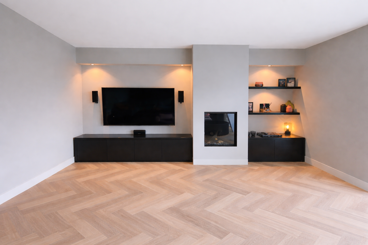 TV meubel Mark is een compleet maatwerk TV meubel dat functionaliteit en design perfect combineert. Dit stijlvolle meubel is ontworpen met een naadloze aansluiting op de schouw, waardoor het geheel één strak en harmonieus wandmeubel vormt. Ideaal voor moderne en luxe interieurs waarin maatwerk het verschil maakt.